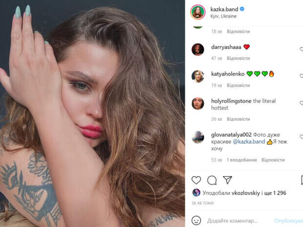 Солистка популярной украинской группы KAZKA Александра Зарицкая впечатлила роскошным видом Как передает Politeka.net, фигуристая Зарицкая чаще всего публикует в своем Инстаграм портреты, которые ей очень удаются. У девушки невероятная внешность. К тому же, она прекрасно умеет краситься. На свежем фото она прикрыла половину лица своими пышными волосами.