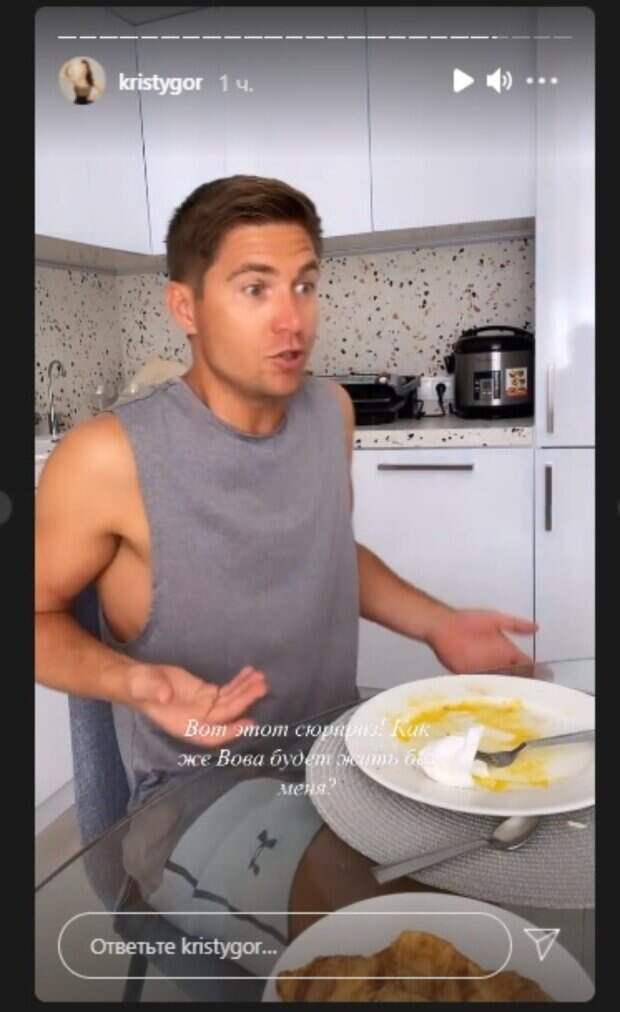В своих новых "сториз" в Инстаграм Кристина засняла забавный случай, произошедший во время завтрака с мужем, передает Politeka.net. Видимо, она напомнила ему о необходимости выпить витамины и попросила, чтобы он сам их взял. "Как это ты не знаешь, какие витамины ты пьешь?", - удивилась девушка. "Что ты даешь - я пью! Откуда я знаю... Это как с твоими баночками... "Найди мне хайлайтер" Что это? Болезнь какая-то? Серьезно!", - пришла очередь возмущаться Владимиру. Он встал из-за стола и подошел к шкафчику с различными баночками, всматриваясь в их содержимое. "Это, чтобы теща пила... Это "комплекс "Красивая жена"... Это "уменьшение ч..на", о!", - обрадовался Остапчук, что нашел то, что надо, и уж было начал откручивать крышечку. "Вова, что ты мне "сториз" портишь, дурачок!", - сквозь смех возмутилась Кристина. Кроме того Горняк засняла супруга, когда он наводил марафет, намазывая лицо кремом, с очень серьезным выражением. "Рембо бой", - подписаны кадры. Напомним, Остапчук взбесил украинцев, став ведущим шоу "Співають всі" А еще Politeka писала, что жену Остапчука в коротких шортиках замучила совесть на прогулке без мужа Также Politeka сообщала, что Остапчук эмоционально обратился к своей "принцессе", которой оказалась не Горняк