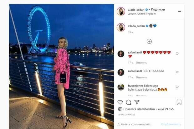 На фоне можно увидеть катер и легендарное колесо обозрения Лондона. Об этом пишет Politeka.net со ссылкой на страничку знаменитости. Фанаты поставили почти 30 тысяч лайков и написали комментарии: "Когда фотку сделала", "Пойдет", "Крутяк", "Ну у тебя постоянно фотки", "Ой, Седан", "Невероятно", "Саша исправился", "Нереально красивая девушка! И эстетически, и физически...", "Не видео лучше получается", "Ну хоть тут Саня на видео не снимает!", "Слышал Зина запрещает Владе отвечать на комменты", "Влада почему ты не заметила как я тебе пролайкала все фотки", "не ,ну так не честно)) тоже хочется в Лондон,после такой красоты", “Золотая рыбка”. Сообщалось, что невеста украинского футболиста Александра Зинченко порадовав фанатов. На фото Влада, так зовут девушку, позировала в босоножках на шпильке и коротеньком платье. Красотка волосы оставила распущенными, а сама стояла на тротуаре. Волосы у девушки были мокрыми, на улице только прошел дождь. Напомним, личная жизнь Зинченко обернулась проблемами для украинца в МанСити Также Politeka писала, что невеста Зинченко в экстра-мини похвасталась длинными ножками А еще Politeka сообщала, что белокурая невеста Зинченко соблазнительно выгнулась и показала все свои достоинства