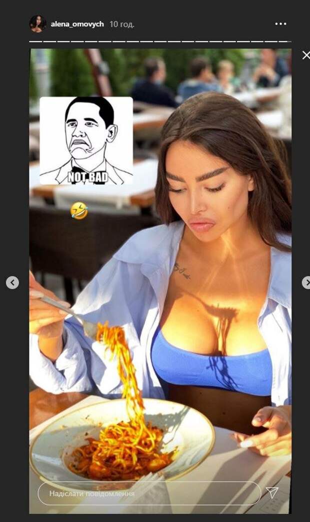 Известная модель Алена Омович, которую называют украинской Кардашьян, показала себя в необычном виде На фото красотка показалась в рубашке и топе. Звезда без стыда демонстрировала свой бюст, а волосы оставила распущенными. Омович сидела за столом и ела пасту, странно смотря на содержимое в тарелке. Об этом пишет Politeka.