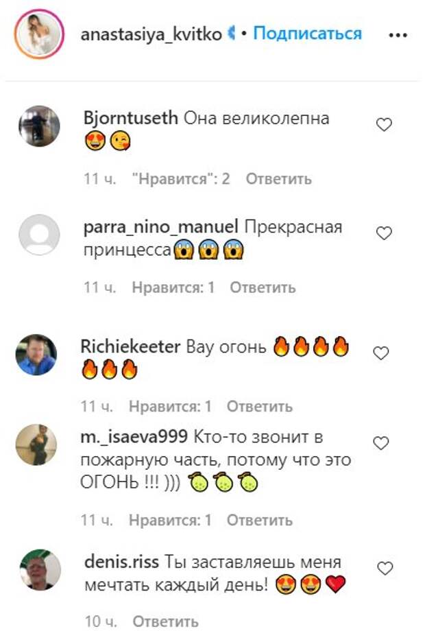 Кроме того, она часто показывает снимки своих подружек-красоток. Несколько часов назад в сети Instagram она познакомила своих подписчиков с обворожительной Авой Фиоре. Ава позирует в соблазнительном красном купальнике, едва прикрывающем ее знаменитые формы. Несколько пуговок спереди расстёгнуты, что позволяет увидеть ее пышный бюст. Впрочем, сама подружка Квитко не особо старается их прикрывать, даже напротив – она позирует, пикантно прогибаясь и делая акцент на пышной груди, тонкой талии и выдающихся ягодицах. Завершают пляжный образ тонкие браслеты и золотые часы. Волосы она распустила и уложила крупными волнами, а от макияжа также решила не отказываться. Пользователи сети оценили по достоинству подружку Анастасии Квитко, оставив для девушки комплименты. "Она великолепна