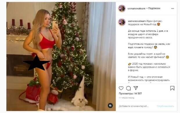 Об этом пишет Politeka.net со ссылкой на страничку знаменитости. "Идеи фитнес-подарков на Новый год. До конца года осталось 2 дня, и в воздухе царит атмосфера праздничного хаоса. Подготовили подарки за месяц или еще ломаете голову?", - написала звезда под фото. Фанаты поставили более 7 тысяч лайков и написали комментарии: "Шикарная мечта", "Ох уж эта фигурка...", "Подарила себе резинки для фитнеса и Ваш марафон для стройных ягодиц 2.0". Мы писали, что фитнес-тренер и модель Екатерина Усманова впечатлила роскошной фигурой, оставшись в одном белье. «Теперь хочу поставить цели на 2021 год», - коротко говорится в сообщении. На опубликованных кадрах Усманова позирует, примеряв облегающий топ и стринги, демонстрируя на камеру рельефный живот и не только. Напомним, фитнес-тренер Усманова устроила акт соблазна под елкой, задрав ножку А еще Politeka писала, что фитнес-тренер Усманова заигралась, чуть не выронив бюст из экстра-декольте, муж не выдержал Также Politeka сообщала, что фитнес-тренер Усманова спрятала "орешек" за веревочками бикини