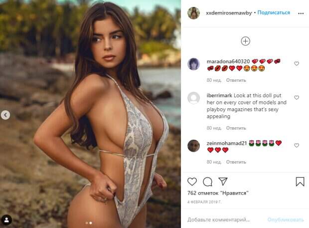 Деми довольно долгое время страдала от собственной внешности и фанатично пыталась похудеть, заработав серьезные проблемы с желудком, она прекратила свои попытки и остановилась. Теперь популярная красотка покоряет миллионы фанатов именно своими формами: «Превосходно. В мире нет никого лучше Деми 🌹 Роуз, она королева ангелов, моя лучшая любимая прекрасная принцесса Деми 🌹 Роза, я люблю тебя, Деми», «Просто сексуально, конец дискуссии!», «Ты такая великолепная 🔥😘», «ого боже мой! Очень хороший мед», «Вы очень красивы😘», «она ничего не оставляет воображению», «Какая красота изгибов 💋 BB 💋💋🤗🤗», «такой красивый цветок», «Совершенство, созданное женщиной». Мы также писали, что Деми любит подчеркивать свои пышные формы длагодаря довольно смелым купальникам, совсем не прикрывающим ее грудь и бедра. При этом она без смущения часто удивляет кадрами в одном халате и даже без белья. Также молодая красотка покорила видом в прозрачном боди и тонкой юбке из сеточки. Знаменитость позировала на мягком диване, удачно расположившись боком к объективу и тем самым подчеркнув свои стройные ноги в босоножках на шпильке. Рядом с моделью также позировала ее милая собачка, умилившая сеть. «Они такие милые вместе, всегда боже, я их так люблю ❤», «Всегда красива», «Выглядишь прекрасно», «Идеально 😍😘🌻🌺», «OMG Demi захватывает дух», «Это будет прекрасно, это гипнотизирует меня и заставит влюбиться», «. .. Я выполняю ваши ... приказы ... !!! 😘🍑🔥😍🇲🇽», «Я люблю тебя детка 😘😘😘». Напомним, Деми Роуз едва удержала пышных «близняшек» в крохотном наряде. Как сообщала Politeka, бесстыжая Деми Роуз сбросила лифчик и показала, как веселится у озера. Также Politeka писала, что влажная Деми Роуз вышла из душа и без стыда блеснула формами