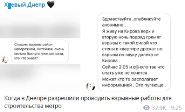 По его словам, взрывы раздаются уже вторую ночь - такие мощные, что аж стены в квартире содрогаются, и спать уже не хочется. Жители Днепра выражают тревогу по этому поводу и просят объяснить, что происходит. Между тем местный Telegram-канал сообщил, что взрывы могут быть связаны с работами, которые ведутся для строительства метро в городе. Как известно, в конце июля 2020 года в мэрии Днепра сообщили, что компания-подрядчик получила необходимый документ на проведение взрывных работ для строительства метро и готова взяться за дело. При этом анонсировалось, что взрывные работы начнутся в 20-х числах августа. "На сегодняшний день разрешение на взрывы получено. Мы планируем, что наш подрядчик сможет перейти к взрывным работам, ориентировочно через три недели. То есть мы будем говорить: в 20-х числах августа", - рассказал заместитель городского головы Днепра Михаил Лысенко. Напомним, стихия обрушилась на Днепр, кадры: "Машины тонут, зонтики летят...". Ранее Politeka сообщала, что жители Днепра громят новые лифты: "ради экономии". Также Politeka писала, что в Днепре вандалы уничтожили целую аллею: фото беспредела.