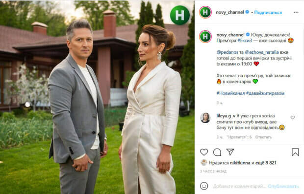 Александр Педан и Наталья Ежова уже готовы к первой вечеринке и встречес Эксам в 19:00», - говорится в публикации. На фото можно увидеть ведущих, которые позируют под открытым небом в стильных костюмах. Украинцы тут же отреагировали на эту новость. «Как же я жду) так волнительно и интересно увидеть», «Ура», «Очень жду», «Наконец-то!!», «Супер», «Огонь», «интересно что на этот раз», - пишут поклонники шоу в комментариях. Реалити-шоу «Эксы» посвящено отношениям и правилам жизни. Ранее создатели сообщали, что главной темой нового сезона проекта станут «страхи новых отношений». Также подчеркивалось, что в третьем сезоне участников ждет большое количество экстремальных испытаний. Рассказывая о новом сезоне шоу, его ведущий Александр Педан подчеркнул, что пары участников действительно смогли удивить их с Натальей Ежовой еще в первом эпизоде. Напомним, Трегубова из "Х-Фактора" сверкнула идеальной фигурой в роскошном наряде под ручку с Педаном. Как сообщала Politeka, Педан засмотрелся на звезду "Х-фактора" Трегубову в кружевах, кадры. Также Politeka писала, что полураздетая Леся Никитюк показала, как собиралась к имениннику Притуле.