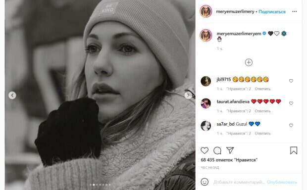 Звезда, которая совсем недавно родила вторую дочь, позирует на улице. Она стоит на заснеженном асфальте на фоне стены, украшенной большим граффити. Образ актрисы идеально подобран для того городского пейзажа. Так, на Узерли теплый длинный свитер, куртка, а также большая и мягкая накидка. Дополняют образ актрисы высокие черные сапоги и светлая шапка. На фото Мерьем выглядит задумчивой и мечтательной. Поклонники актрисы бурно отреагировали на ее снимки. «Очень красивая», «Я люблю тебя Мерьем», «Какая же ты красивая», «Милашка», «Я замер из-за твоих глаз», «Отличные фото», «Что это за красота?», «Икона», - пишут люди. Ранее мы писали, что Мерьем рассказала, как принимала участие в одном из шоу, чтобы выиграть деньги - маме на новую кухню. Однако, актрису ждал полный провал, из-за чего она сильно расстроилась. Через несколько лет ей удалось воплотить мечту - вместе с ролью в сериале "Великолепный век" на нее посыпалась не только слава, но и хорошие гонорары. Напомним, Мерьем Узерли из "Великолепного века" показала себя до славы и рассказала о личной драме: "Много плакала...". Как сообщала Politeka, Мерьем Узерли из «Великолепного века» умилила снимком новорожденной дочки: как выглядят обе малышки Роксоланы. Также Politeka писала, что недавно родившая Мерьем Узерли из "Великолепного века" очаровала новыми фото: даже золото не затмит эту красоту.