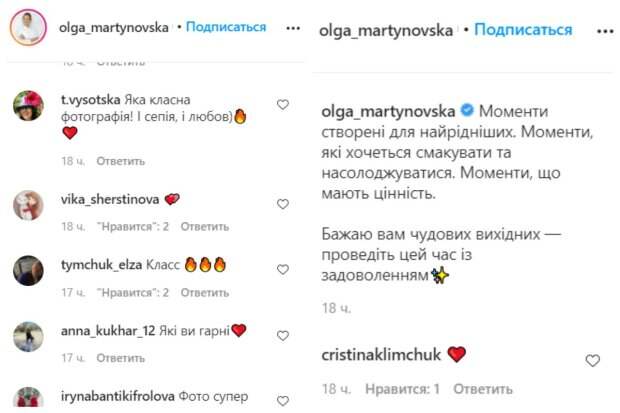 На фото Ольга стоит на ферме и на руках держит дочь. Девочка прижимается к маме и трется своим носиком о нос Ольги. Мама и дочка примеряли схожие наряды в светлой цветовой гамме. На них - теплые вязанные свитеры, штаны и ботинки. Обе распустили свои волосы по плечам. "Моменты созданы для самых родных. Моменты, которые хочется смаковать и наслаждаться. Моменты, имеющие ценность", - подписала снимок Ольга. Поклонники обратили внимание не только на девочку, но и на улыбчивую Ольгу. Растроганные поклонники принялись нахваливать свою любимицу. "Какая классная фотография! И сепия, и любовь)", "Какие вы красивые", "Фото супер", "Ты так похожа на маму, это так круто", - пишут в комментариях. Напомним, судья "Мастер Шеф" Мартыновская призналась, кому отдала особенное место в своем сердце. Politeka рассказывала, Хименес-Браво из "Мастер Шеф", выехавший из Украины, показал свое "новое" жилье. Ранее сообщалось, судья "Мастер Шеф" Мартыновская показала тело в маленьком купальнике и разочаровала.