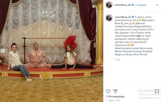 Скандальная российская балерина Анастасия Волочкова похвасталась фирменной растяжкой, несмотря на присутствие детей Об этом сообщает Politeka со ссылкой на Instagram знаменитости. «У меня в гостях замечательные гости.