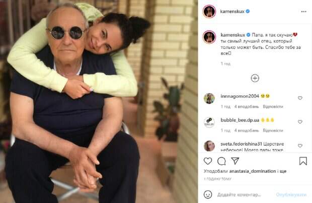 На снимке папа Насти сидит на крыльце в забавных солнцезащитных очках, а его любимая дочка обняла его сзади. Похоже, это архивный снимок, который был сделан еще задолго до смерти отца певицы. На нем Каменских выглядит молодой и беззаботной, она прижимается к любимому папочке и милы улыбается в камеру. В подписи к фотографии Настя написала: "Папа, я так скучаю. Ты самый лучший отец, который только может быть. Спасибо тебе за все". Пользователи тут уже принялись активно обсуждать новую публикацию звезды: "Берегите родителей, мы без них никто!", "Сил вам, Настенька, а папочке светлого пути. Пусть его любовь всегда будет с вами. Я уверена, что он за вами присматривает", "Какое красивое фото и стильный папа", "У меня тоже папа на небе! Безумно тяжело", "Все будет хорошо", "Царствие небесное!", "Мы сильнее ценим и скучаем по человеку, только когда его теряем!". Напомним, Могилевская поздравила Каменскую с праздником, заговорив о детях: "Маленьких Потапчиков....". Как сообщала Politeka, 34-летняя Каменских в свой день рождения превратилась в копию жгучей мексиканки: "Какой Потап везунчик". Также Politeka писала, Потап, не сдерживая эмоций, обратился к Каменских после сцен ревности и прощания: "Тысячи тропинок в рай. ..".