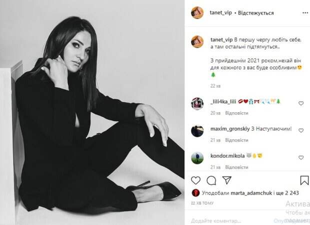 Популярная украинская актриса Татьяна Песик из «Квартала 95» впечатлила поздравлением с Новым годом Как рассказывает Politeka, фотографией красотка решила поделиться у себя в Instagram. «В первую очередь, любите себя. А там и остальные подтянуться. С пришедшим 2021 годом, пусть он для каждого будет особенным», - говорится в сообщении.