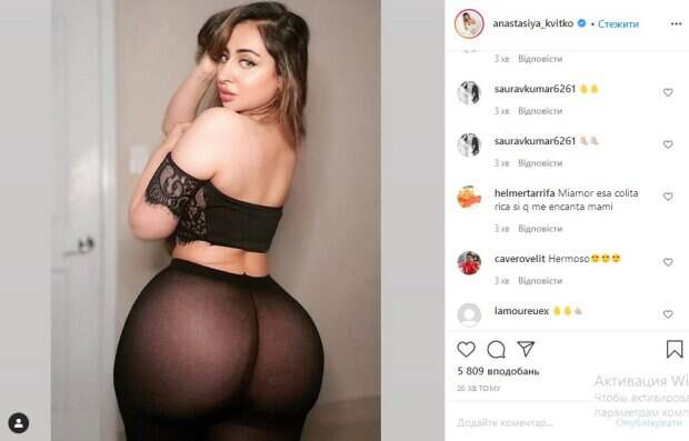 Девушка задрала руки к голове, из-за чего снимок получился особенно нежным. Пользователи сети буквально «засыпали» красотку комплиментами. «На это невозможно смотреть, хорошая крошка», «так горячо — невозможно выдержать», «боже, наряд сейчас лопнет же», «мне понравилось, одобряю», «очень красивая», «божественный вид», — пишут они. До этого сообщалось, что модель Анастасия Квитко, которая прославилась своими внушительными формами, сверкнула главной гордостью в крохотном белье. На фотографии видно, что Квитко имеет явно нестандартные формы. У нее внушительные ягодицы и грудь, которые знаменитость не стесняется демонстрировать каждый раз, когда может. Новые снимки девушки в провокационном наряде появились несколько часов назад на фанатских страницах знаменитой красотки. Напомним, что Анастасия Квитко не удержала сочные формы, натянув слишком маленькое бикини: "Это просто мед!". Как Politeka писала, что Анастасия Квитко показала свою «ким» в откровенном купальнике: «Вау, светится». Также Politeka сообщала, что Анастасия Квитко подразнила пышными "пончиками" в одной сеточке и кружевах: топ "вкусных" образов.