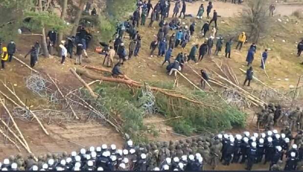 Мигранты с Ближнего Востока, которые сегодня днем пытались прорвать белорусско-польскую границу, на ней и заночевали. По ценкам белорусского Погранкомитета в палаточном лагере, разбитом у пограничного проволочного забора, порядка 2 тыс человек, передает корреспондент «ПолитНавигатора».