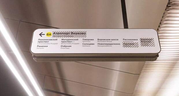Новые указатели с отмеченными станциями «Аэропорт Внуково» и «Пыхтино» уже начали появляться на станциях метро Солнцевской линии. Об этом рассказали на сайте мэра Москвы.