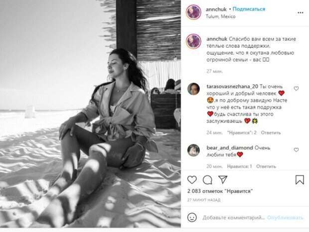 И все же, пара рассталась совсем недавно. Анна рассказала обо всем публично, после того, как отправилась на «эмоциональную перезагрузку» вместе с лучшей подругой – Настей Каменских. Там, вдоволь наплакавшись и показав это в реалити-шоу Насти, Анна наконец стала приходить в себя. Новый пост она также сопроводила словами о чувствах. «Спасибо вам всем за такие тёплые слова поддержки, ощущение, что я окутана любовью огромной семьи - вас