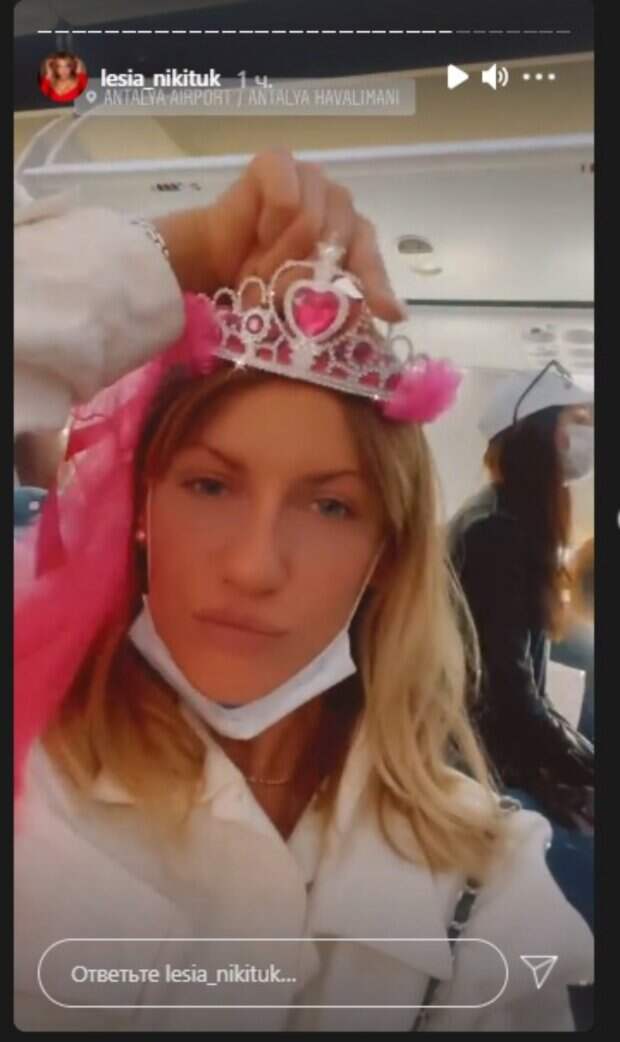 Телеведущая Леся Никитюк всколыхнула неожиданными кадрами из самолета Как передает Politeka.net, 33-летняя звезда опубликовала свежие "сториз" у себя в Инстаграм, пощекотав публике нервишки - на голове у девушки красовалась сначала розовая, а затем голубая фата с диадемой. Уже давно пользователей интересует тема, есть ли у Никитюк возлюбленный и если да, то кто он.