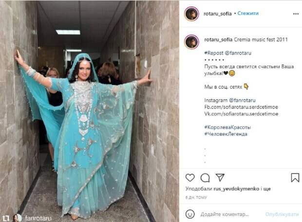 В этот раз София Ротару предстала в Крыму в традиционном татарском наряде - сари, пишет Politeka.net. Небесно-голубой наряд очень к лицу певице. Она стоит между стен, расставив руки, подчеркнув свою фигурку. Мириады жемчуга, украшений и россыпи камней добавляют наряду изысканности, волшебности и особенного сказочного шарма. Авторы паблика подчеркнули, что певица сделала фото в 2011 году, еще до оккупации Крыма. Известно, что на украинском полуострове у артистки находится вилла, отель, который по неподтвержденным данным певица собирается продавать, из-за финансовых проблем, возникших через пандемию. Фанатам очень понравился образ Софии Михайловны, они воспевали красоту певицы е лучезарную улыбку и вечную молодость. "Вот это образ! Красота!