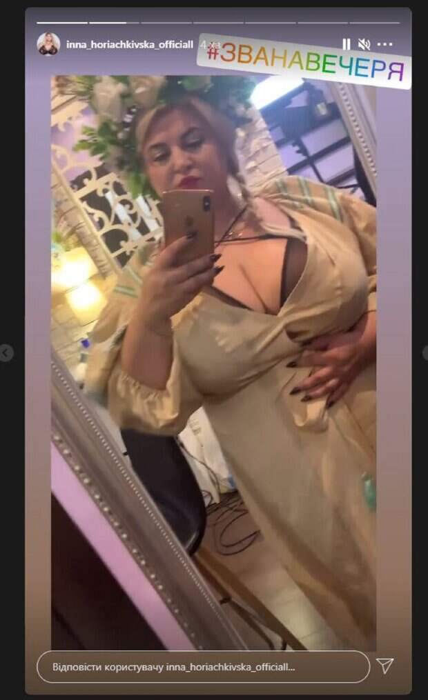 Как оказалось, такой наряд звезда выбрала для передачи "Званый ужин". Об этом пишет Politeka.net со ссылкой на профиль Инны в социальной сети Инстаграм. На втором фото Инна уже была в цветочном платье с большим декольте, в котором можно увидеть обтянутый красными веревочками бюст. Модель дополнила образ золотым украшением на шее, а снимала себя максимально близко, чтобы сделать акцент на огромных "дыньках", благодаря чему кадр получился довольно жарким. Фанаты не ставили лайки и не писали комментарии, но так и хочется добавить: "Немыслимый размер, просто космос". Сообщалось, что популярная модель сайз-плюс Инна Горячковская поделилась небольшим роликом с новым образом. На небольшом ролике модель решила показать формы в очередной раз с весьма удачного ракурса. Напомним, украинка с 15-м размером устроила непристойные танцы на «Званом ужине», впечатлив самых стойких А еще Politeka сообщала, что украинка с 15-м размером не смогла втиснуть огромные "бомбочки" в спасательный круг Также Politeka писала, что украинка с 15-м размером бюста продемонстрировала свои богатства в кружевах