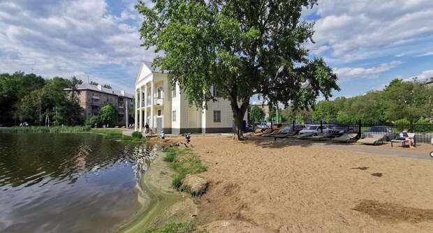 Пляж у водоема Южный в Подольске готовят к открытию сезона. На берег завезли 60 кубометров песка и установили у воды еще пять шезлонгов.