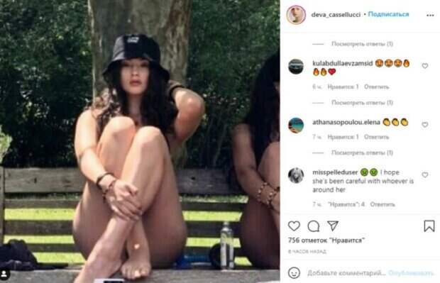 Звезда в этот раз показала фото, где позировала в блузу и штанах. девушка стояла у штор, демонстрируя роскошную фигуру, ведь блузу расстегнула, намекая на отсутствие белья. "Привет", - интригующе написала Дева под фото. Фанаты поставили почти 8 тысяч лайков и написали комментарии: "Ангел на земле", "За гранью красоты", "Привет, красотка", "Если бы я сказал, что люблю тебя, я надеюсь услышать, что ты любишь меня в ответ", "я так сильно тебя люблю", "Улучшенная версия мамы", "Привет! Если читаешь комментарии, знай, ты очень красивая". Сообщалось, что начинающая модель Дева Кассель, дочь актрисы Моники Беллуччи, засняли во время пргулки с друзьями. Позируя в летней одежде, благодаря выбранной позе, 16-летней красавице удалось создать яркий вид, ведь она скрыла все лишнее, прислонив ноги к себе. Напомним, 16-летняя дочь Моники Беллуччи в платье с глубоким декольте показала главную красоту А еще Politeka писала, что 16-летняя дочь Моники Беллуччи показала лучший ракурс для фото в бикини Также Politeka сообщала, что 16-летняя дочь Моники Беллуччи составила матери конкуренцию, пошалив в ванной