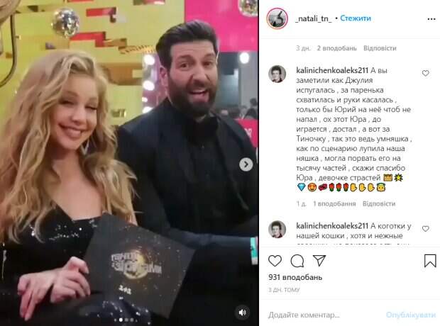 На втором видео произошло немыслимое. Горбунов за кулисами шоу вдруг схватил Тину за шею и попытался поцеловать. Тина не сдержалась и огрела ведущего микрофоном. Из ролика становится понятным, что эта была шутка, которая, впрочем, смутила Тину. Горбунов после инцидента не остановился и попытался погладить Тину по лицу. «И это все за один эфир - Тина порадовала и СалемТину, и ГорбаТину и ХардКоль. Седьмой прямой эфир Танцев со звездами», - подписали авторы аккаунта. За несколько дней пост собрал почти тысячу лайков и множество комментариев. «Одна Дантина на диете», «А вы заметили как Джулия испугалась, за паренька схватилась и руки касалась, только бы Юрий на неё чтоб не напал, ох этот Юра, доиграется, достал», «Горбунов переборщил», «Тина милашка такая))», «Раздала всем, кто что заслужил», «Прищур левым глазом.... супер)))», «Что-то в этом есть», «Все класс», - пишут пользователи сети. Напомним, что Тина Кароль показала, что значит совершенство, засветив пикантные места: «Безумная красота». Как сообщала Politeka, Кароль превратилась в роковую искусительницу, кардинально сменив имидж: "Стыдно, Тина, где...". Также Politeka писала, что игривая Тина Кароль в ночнушке заставила мужчин глотать слюнки: "Такое забыть нельзя".