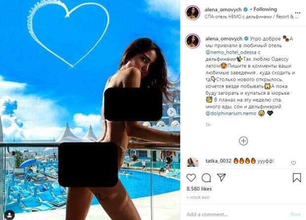 Модель надела миниатюрный купальник бледно-оранжевого цвета, который едва-едва прикрыл ее интимные места. В таком виде Алена позировала на фоне бассейна у перил спа-отеля. На первом фото Омович оперлась руками о перегородку, слегка согнулась и оттопырила свою пятую точку. С такого ракурса открывается прекрасный вид на осиную талию, стройные ноги и соблазнительные изгибы красотки. На втором снимке модель повернулась к камере полубоком, продемонстрировав выдающуюся грудь. "Так люблю Одессу летом😍 Пишите в комменты ваши любимые заведения , куда сходить и тд👇🏻 Столько нового открылось, хочется везде побывать 🙀 А пока буду загорать и купаться в морьке. В планах на эту неделю спа, много еды, сон и дельфинарий", - поделилась Алена Омович. В комментариях пользователи социальной сети оценили внешний вид красотки и оставили много восторженных комментариев: "Воу...как круто 🔥"; "Нереальное тело"; "Самая лучшая и сексуальная девушка"; "Очень красиво 😍 ❤️"; "Ты супер секси🔥🔥"; "Могу я клонировать тебя и жениться?". Напомним, украинская Кардашьян в дерзком наряде уединилась в лифте и показала бюст А еще Politeka писала, что украинская Кардашьян козырнула вкусными объемами в тесном белье Также Politeka сообщала, что украинская Кардашьян в топе и трусиках показала настоящую бурю