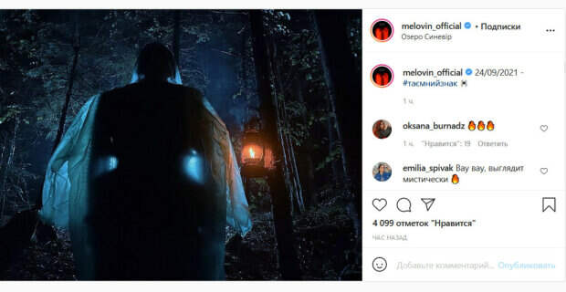 Сейчас MELOVIN работает над новым проектом, вовсю дразня поклонников разными намеками. Как пишет Politeka.net, на своей странице в Инстаграм он поделился необычным фото. Снимок сделан ночью в лесу. На нем можно разглядеть человеческую фигуру с необычными формами, снятую со спины. На нее сверху наброшена полупрозрачная накидка. Единственным источником света на снимке оказался фонарик. Поклонники MELOVIN-а тут же поняли, что это – кадр из его нового клипа, который певец отправился снимать на озеро Синевир. «Вау вау, выглядит мистически», «Призрак летящий на крыльях ночи», «Как я обожаю его песни. Все со смыслом, как мини истории» «Обожаю всё тайное и загадочное», «Призрак невесты», «Мистически выглядит. Будет лучшим подарком осени», - пишут люди. Напомним, любимец Данилко MELOVIN рассказал, почему решил участвовать в "Танцях з зірками". Как сообщала Politeka, Melovin из "Танців з зірками" озадачил странной выходкой, в сети заволновались. Также Politeka писала, что фаворит Данилко Melovin заинтриговал кадрами с партнершей по "Танці з зірками".