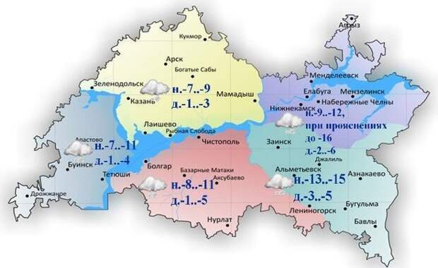 .. -6 градусов. В Казани ожидается от -1 до -3 градусов. В Набережных Челнах синоптики прогнозируют от -2 до -6 градусов. На дорогах гололедица.