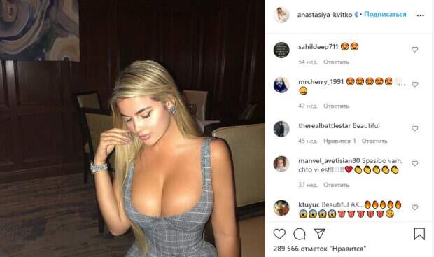 Российская модель Анастасия Квитко, которую называют копией Ким Кардашьян, показала пышный бюст в крошечном платье Модель каждый вечер старается проводить ярко и показывает лучшие моменты времяпровождения в своих Стори, при этом девушка старается привлекать внимание своими нарядами. Так как она рекламирует одежду, то не стесняется показать себя в довольно открытых образах.