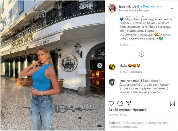 Украинская телеведущая Леся Никитюк рассказала про свою поездку в Португалию Как передает Politeka.net, Леся Никитюк является популярной украинской телеведущей. Ранее она вела программу "Орел и Решка", где объездила множество стран. Недавно Леся отправилась в отпуск в Португалию на остров Мадейра. Девушка активно ведет социальные сети и делится моментами из жизни с поклонниками.