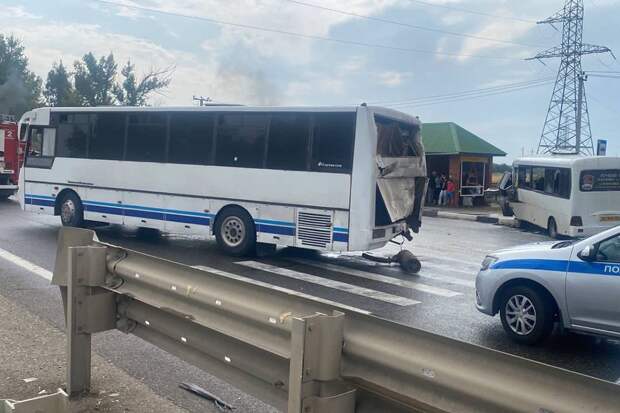 На Ейском шоссе в Краснодаре днем 12 сентября столкнулись два пассажирских автобуса