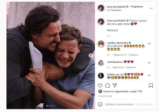 Сейчас актер занимался проектом "Ангелы". На новом фото Тарас показался вместе с коллегой, которого обнимал. Парни улыбались, пока Цымбалюк крепко сжимал актера. На других фото можно увидеть работу Тараса и других на съемочной площадке, где занимались проектом "Ангелы". "Пацаны, спасибо вам за два месяца", - написал Тарас. "Красавчики", - написала Наталья Денисенко под фото. Ольга Сумская и множество других фанатов поставили лайки и написали комментарии: "Прекрасные", "Огонь". Напомним, Цымбалюк из "Крепостной" оказался в исправительной колонии и поразил кадрами своих рабочих будней А еще Politeka писала, что женившийся Цымбалюк обескуражил кадрами со съемок новой "Крепостной" Также Politeka сообщала, что Цымбалюк из "Крепостной" оказался на разбитом вдребезги авто