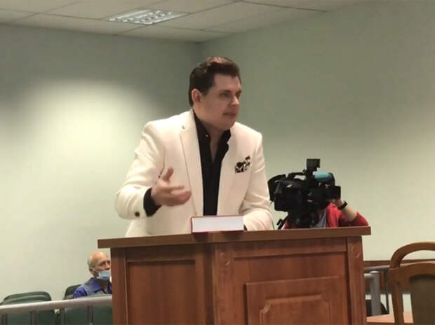 В Петербурге продолжают судить бывшего доцента СПБГУ Олега Соколова, убившего и расчленившего свою студентку Анастасию Ещенко в ноябре 2019 года. В суд пришёл Евгений Понасенков в эффектном белом пиджаке и устроил настоящее шоу. фото: Кадр из видео Допросить Понасенкова предложила адвокат потерпевших.