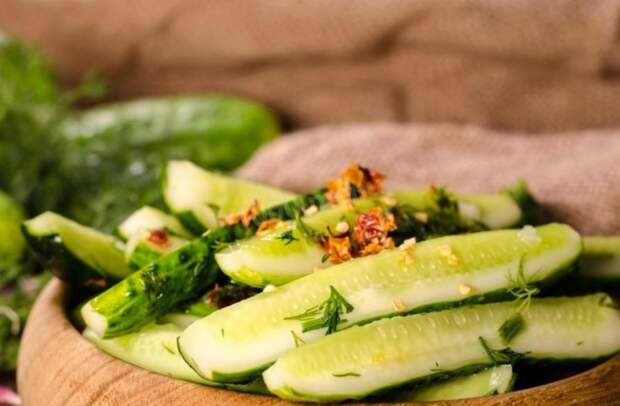 Маринованные огурцы по обычному рецепту знают все домохозяйки и конечно ваши домашние уже привыкли к ним. Однако если вы хотите удивить себя и своих близких, то приготовьте малосольные огурцы по этому рецепту. Готовятся они быстро и в скором времени их можно подавать на стол. Но чем дальше, тем они стают вкуснее - помните это!