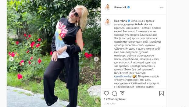 Известная украинская телеведущая и актриса Лилия Ребрик рассказала о том, как прошел ее май 40-летняя звезда всегда выглядит стильно, пишет Politeka.net. В одном из интервью красотка рассказала, что в гардеробе девушки должно быть хотя бы два ключевых образа: белая блузка и черный костюм, а также красное платье и каблуки.