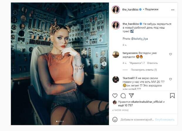 На новых фото Санина была в прозрачном наряде, сидя в вертолете. Девушка добавила несколько снимков, показав и других участников группы. "Не забудь зарядиться в новый рабочий день под наш трек!", - написала Юлия. Фанаты поставили более 10 тысяч лайков и написали комментарии: "Взглядом зарядили", "Я не верю своим глазам у нас что есть МИ 26 ??? он летает ?? Это аэродром или музей ???", "Хотелось бы больше backstage с этого клипа", "Все классные, но у Клима фото вообще восторг", "Самые лучшие". Напомним, Юлия Санина и ее муж из The Hardkiss продемонстрировали, как выглядели много лет назад на собственном торжестве А еще Politeka писала, что Санина из The Hardkiss вместе с мужем-красавчиком озадачила фанатов Также Politeka сообщала, что Юлия Санина в прозрачном наряде покорила новым видео и эффектным образом