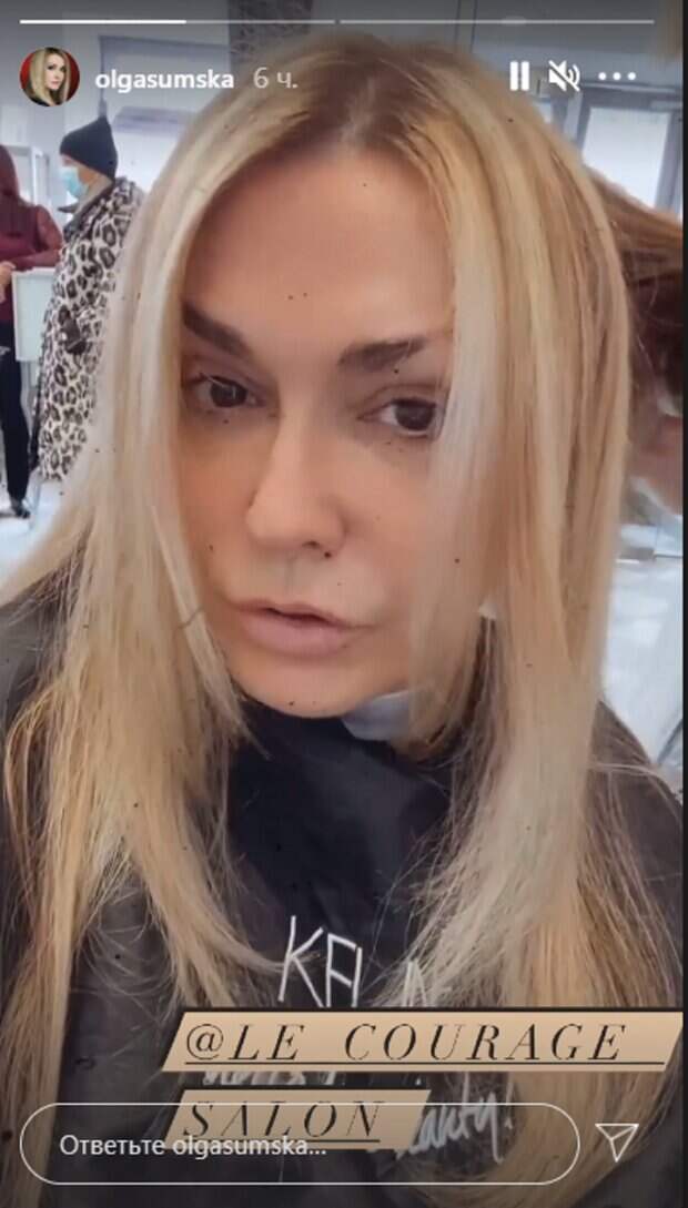Актриса Ольга Сумская показала результат после посещения салона красоты Кадры украинская актриса кино и театра выложила у себя в сторис Instagarm, пишет Politeka.net На выходных 54-летняя Ольга Сумская решила отметиться походом в салон-красоты, где привела в порядок свои волосы, перекрасив их в другой оттенок, а также сделала укладку.