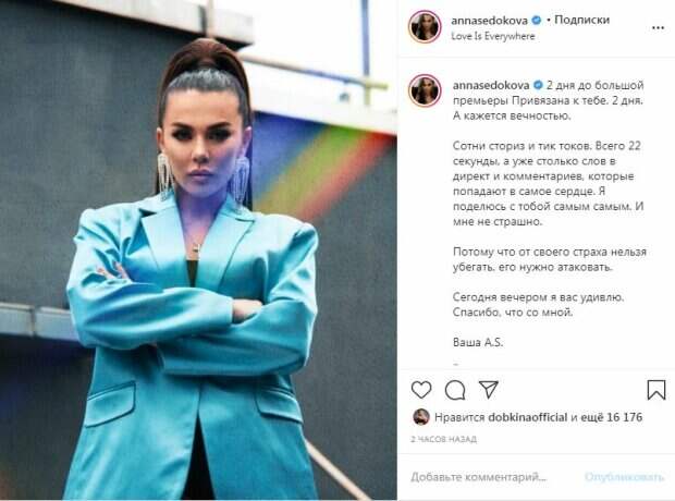 Красотка подчеркнула глаза темными тенями, карандашом и тушью. В посте артистка рассказала, что скоро состоится премьера ее нового клипа "Сотни сториз и тик-токов. Всего 22 секунды, а уже столько слов в директ и комментариев, которые попадают в самое сердце. Я поделюсь с тобой самым самым. И мне не страшно. ⠀ Потому что от своего страха нельзя убегать, его нужно атаковать. ⠀ Сегодня вечером я вас удивлю. Спасибо, что со мной. ⠀ Ваша A.S.", - написала Анна. За два часа пост собрал более 16 тысяч лайков и много комментариев. "Это ❤️ космическая!", "Красотка", "Жду ❤️❤️❤️", "Удачного понедельника ☀️☀️☀️", "Никогда так не ждала, как эту песню