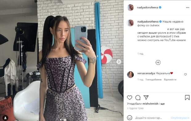 На новых снимках Надя позирует в уютной комнате, где проходили съемки, она фотографирует себя в зеркало на телефон. Перед камерой певица появилась в стильном пестром костюмчике, который красиво подчеркнул ее изящные формы. Волосы артистки собраны в кокетливые хвостики, а на ее лице легкий аккуратный макияж. В подписи к фото Дорофеева написала: "Нашла недавно фотку со съемок, и вот как раз сегодня вышел ролик в этом образе с мейком для фотосессий. Уже можно смотреть". Пользователи начали засыпать Надю комплиментами в комментариях: "Очень идут эти хвостики", "Я уже смотрела. Мне очень понравилось", "Красотка", "Икона стиля", "Нереальная", "Красивая". Также прокомментировал снимок Нади ее муж Владимир Дантес, написав: "Оуууу". Напомним, Дорофеева в топе сверкнула точеной фигуркой, которой можно позавидовать: "Эстетика". Как сообщала Politeka, Мокрая Дорофеева свела с ума видом в оригинальном купальнике: фото стройной красотки. Также Politeka писала, Дорофеева показала плоский живот, задрав майку без лишних стеснений: "Рай для пацанов".