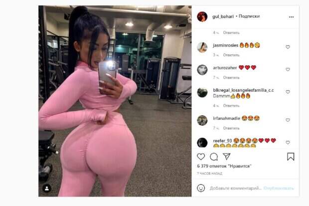 Известная модель Гюль Бахари, которую называют турецкой Кардашьян, показала себя в спортзале На фото Бахари позирует в розовых штанах и топе. Гюль развернулась спиной, потянув за обтягивающую ткань, чтобы выделить упругие формы ягодиц. Девушка волосы собрала в хвостик, а смотрела в телефон, пока снимала себя в отражение зеркала.