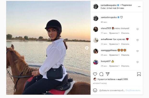 Об этом пишет Politeka.net со ссылкой на страничку знаменитости. Фанаты, включая бывшую солистку группы "ВИА Гра" Татьяну Котову, поставили почти 3 тысячи лайков и написали комментарии: "Очень стильно!", "Как красиво", "Жить в кайф", "Вы в этом году все попробовали", "Я так понимаю , решили с Нового года все попробовать, движуха", "Гармония и воссоединение с природой", "Тебе подходит красотка в роли наездницы", "Красавица". Мы писали, что певица и победительница "Танців з зірками" Санта Димопулос похвасталась, как проводила время в отпуске. В ролике отчетливо видно, как украинская звезда Санта Димопулос в специальной экипировке решила получить дозу адреналина на экстремальном аттракционе. Аттракцион представляет из себя зиплайн, протянутый под углом 16 градусов между небоскребами (46-й этаж) над причалом Дубая. Напомним, Димопулос из "Танців з зірками" пленила загорелыми изгибами в мокром бикини А еще Politeka писала, что Димопулос из "Танців з зірками" устроила сеанс соблазна под душем Также Politeka сообщала, что Димопулос "Танців з зірками" раскрыла тайну о своем отце, откровенное признание