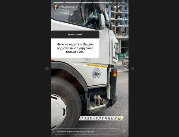 Сам Остапчук отшучивался на эту тему. «Чего не ездите к Вашим родителям с супругой, а только к ее?» - как-то спросили ведущего фолловеры. «Подкаблучник», - коротко ответил Владимир и показал забавное фото. В этот раз Кристина поехала в Умань вместе с супругом. В дороге она напевала песню Тины Кароль. "И так уже третий час", - заявил Остапчук. Приехав, втроем они отправились на шоппинг. «Мы приехали в Умань. И сейчас маму везем на шоппинг. Мама хочет в магазин «Соблазн». Мам, это секс-шоп?», - обратился шоумен к родительнице. Напомним, Владимир Остапчук и Кристина Горняк поженились 15 октября 20202 года. Этому предшествовал непростотой бракоразводный процесс телеведущего с предыдущей женой Еленой Войченко. Она обвинила Владимира в изменах, а в сети телеведущего стали критиковать за то, что он бросил жену с двумя детьми. Напомним, Остапчуки предались утехам возле бассейна, кадры с жаркого курорта: «Много поцелуев…». Как сообщала Politeka, жена Остапчука призналась в своей зависимости, вызвав ажиотаж: "Привет, я Кристина, и я....". Также Politeka писала, что жена Остапчука блеснула плоским животиком в белом купальнике: "Если вернуться в юность…".