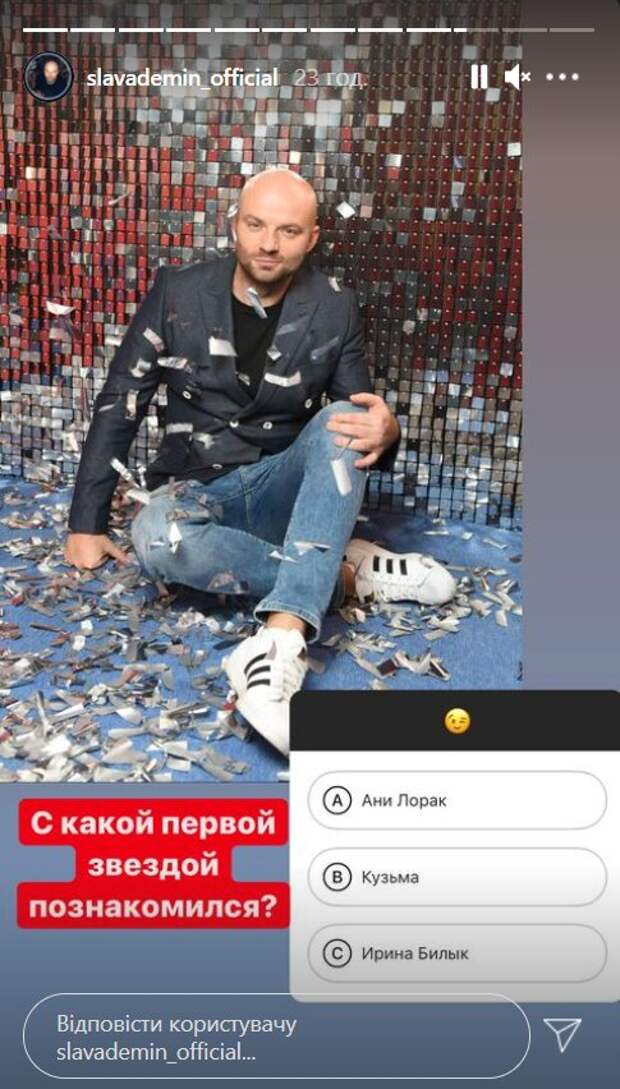 Известный телеведущий ответил на вопрос своей аудитории: "С какой первой звездой познакомился?" Демин предложил три варианта ответа: Ани Лорак, Кузьма, Ирина Билык. А уже в ледующих сториз дал ответ на интересный вопрос. Оказывается, первой звездой была Лорак. И знакомы они уже почти 20 лет. "Первая звезда - это была Ани Лорак. Это было во Львове еще в 2002 году", - написала Слава Демин и добавил снимок знакомства. На фотографии совсем юные Лорак и Демин. Слава Демин еще с волосами на голове, на лице очки, парень с микрофоном задает вопрос звезде. Лорак в красно-белом костюме, с локонами на голове и характерным макияжем для 2000-х. Стоит напомнить, что недавно Лорак приехала в Киев. О причинах её визита в украинскую столицу не сообщалось. Но несложно догадаться, что Лорак прилетела с презентацией своей новой видеоработы "Наполовину", премьера которой состоялась 25 февраля. А 24 марта Лорак появилась в эфире украинского радио Люкс FM, ведущим которого является новоиспеченный холостяк Слава Демин. Напомним, Лорак не сдержала эмоций в объятиях загорелого "любовника": "Дождались-таки мы!" Как сообщала Politeka, Ани Лорак в обнимку со своим "любовником" намекнула на долгожданное событие: "Боже, это не сон" Также Politeka писала, Ани Лорак пришла на эфир российского телеканала в узком топе, даже бывший муж оценил: новое фото