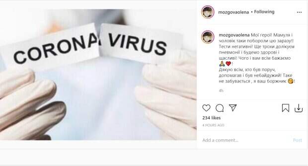 Украинский продюсер Елена Мозговая рассказала, как звезда шоу "Голос країни-9" Дэвид Аксельрод борется с китайским вирусом Как сообщает Politeka.net, ее муж и мама Виолетта недавно стали жертвами пандемии, но уже чувствуют себя намного лучше. Елена Мозговая поделилась с поклонниками радостными новостями на своей странице в соцсетях "Инстаграм" и "Фейсбук".
