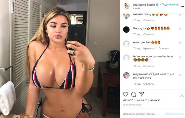 Похоже, Настя позировала перед походом на пляж. Практически без макияжа и с распущенными волосами девушка выглядела очень привлекательно, что сразу же отметили фанаты. И хотя Квитко часто показывает фигуру в белье или купальниках, так как рекламирует их в своем профиле, ее фото все также восхищают фанатов. «Так горячо, ух», «Очень мило, я дам тебе это», «Kакая вкусная малышка😍», «Byotifull», «Мой боже, ты просто совершенство», «Это было так сладко», «Ооооооооооооо ты очень милый и очень горячий малыш», «Вы как модель можете путешествовать и иметь дело со многими. У вас есть время, чтобы встретиться с кем-нибудь еще. Парень был бы очень ревнив, чтобы потерять тебя на день для всех этих других», «Довольно пожалуйста», - написали пользователи. Также а пикантном фото модель показала, как позировала в злотом бикини, обнажив ягодицы и тонком лифчике с множеством завязок, судя по всему не от купальника, так как его цвет чуть другой, чем у нижней части. При этом длинные светлые локоны Настя завязала в высокий хвост. также обнажив и спину. «precious💕», «Красивая дамочка, ох», «baby💗💗💓💕💕💞beautiful💞💗💓💓», «!! Рейна Линда »., 🌹😘», «Милая мамочка, какой красивый хвост!», «прекрасный видок, просто прекрасный», «Такая интимно горячая поза, малышка😘😋», «Ты просто солнце, но эта поза…», «Почему ты такая дерзкая, боже», «Так прекрасно! Анастасия ты просто дикий ангел🤘😘»Я бы хотел быть рядом с тобой, любовь моя, какая милая за*ница, любовь моя», - написали фанаты. Напомним, что русская Кардашьян еле вместила пышный бюст в неприлично глубоком декольте Как сообщала Politeka, русская Кардашьян Квитко надела купальник с разрезом в месте Х, откровенные фото взбудоражили сеть. Также Politeka писала, что пышногрудая русская Кардашьян не вместила красоту в микро топ