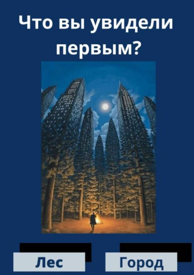 Психологический тест по картинкам может рассказать многое о человеке и определить его настроение Чтобы результат теста был максимально точным, вам нужно не разглядывать картинку, а максимально быстро сказать то, что первым пришло в голову. Город. То, что вы первым увидели дома, говорит о вашей целеустремленности и коммуникативности.