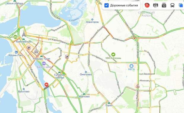 Большая Крыловка и ул. Ленская. Движение на этих учатках затруднено. Пробки наблюдаются на ул. Татарстан, ул. Пушкина, ул. Лобачевского, ул. Дзержинского, ул. Крала Маркса, ул. Ершова, просп. Победы, ул. Ломжинская, ул. Закиева, Мамадышском тракте, Кремлевской дамбе, ул. Сибгата Хакима, просп. Ямашева, ул. Ленинградская. Подписывайтесь на telegram-канал и группу «ВКонтакте» «Реального времени».