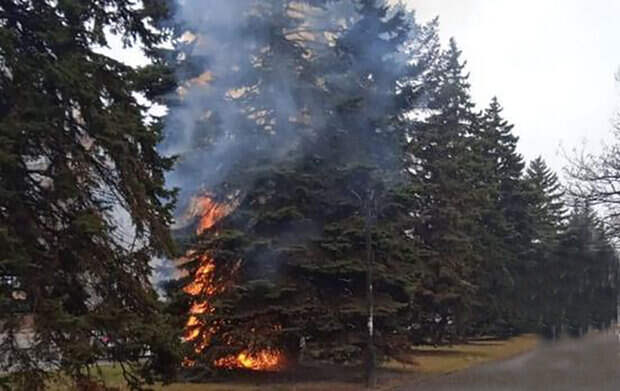 В Кривом Роге возле одного из высших учебных заведений пылала елка. Об этом сообщает "Первый городской". В Металлургическом районе возле одного из корпусов Криворожского национального университета утром подожгли живую елку. Вызов спасателям поступил около 11.50. Как сообщила свидетель, вечнозеленое дерево загорелось из-за пожилой женщины 80-90 лет.