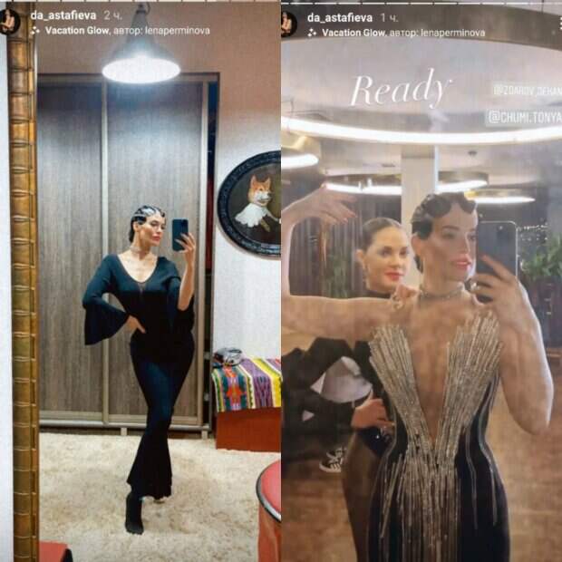 Изначально Даша примерила весьма скромный и лаконичный образ с черным платьем в пол и необычной прической с гладко уложенными волосами. Им звезда и похвасталась перед зеркалом в самом начале своего выступления. После Астафьева переоделась в тонкий комбинезон с массивной россыпью камней и бахромой из бус до самых колен. Для винтажного и несколько дерзкого образа также певица выбрала вечерний макияж с акцентом на глаза. Ранее Даша появилась на съемках шоу «Где логика?», где поучаствовала вместе с Машей Ефросининой. Чтобы появиться перед камерами и сразу обратить внимание на себя, артистка выбрала наряд с внушительным вырезом в зоне декольте, ярко-желтый пиджак с перьями и аккуратный макияж. Маша Ефросинина же предпочла малиновый костюм без принтов, что подчеркнул ее фигуру. Как можно заметить, артистки сыграли на контрастах и оба образа смотрелись рядом очень ярко. Ранее Politeka писала, что Астафьева в полупрозрачном платье устроила эффектную прогулку у причала: "Ох и жаришка, Даша". Напомним, что Астафьева задрала юбку короткого платья, блеснув бельем в турецком магазине: кадры беспредела. A еще Politeka сообщала, что Астафьева в цветочном купальнике показала необычный нежный образ: "оставляю это фото для. .."