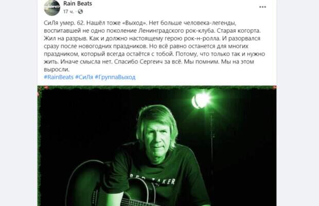 "Жил на разрыв. Как и должно настоящему герою рок-н-ролла. И разорвался сразу после новогодних праздников. Но всё равно останется для многих праздником, который всегда остаётся с тобой. Потому, что только так и нужно жить. Иначе смысла нет. Спасибо Сергеич за всё. Мы помним", - написал Кирилл Рейн, вспоминая о Селюнине. Группа "Выход" – советская и российская группа, единственным постоянным участником которой являлся ее автор и лидер Сергей Селюнин. Группа играла русский рок без четких стилистических рамок, а одни и те же песни звучали каждый раз по-разному. Всего в дискографии "Выхода" около двух десятков альбомов, в том числе "Непрерывность простых вещей", "Выхода нет". В 1989 году Селюнин участвовал в записи совместного альбома с музыкантами "Аквариума", а в 1992-м — в альбоме "Созрела дурь" группы "Ноль". Последняя студийная запись Сергея Селюнина, альбом "Подкрался", датируется 2019 годом. Напомним, перестало биться сердце известного музыканта, подарившего миру многие хиты. Как сообщала Politeka, оборвалась жизнь творца культового сериала, который цитируют миллионы. Также Politeka писала, что ушел из жизни музыкант культовой группы, его хиты знали наизусть.