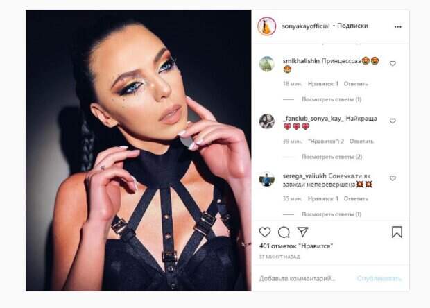 Об этом пишет Politeka.net со ссылкой на страничку знаменитости. "Если ты можешь видеть прекрасное, то только потому, что носишь прекрасное внутри себя", - написала Соня под фото, которое опубликовала в Инстаграм. "Огонь", "Принцесса", "Самая лучшая", "Сонечка, ты как всегда, непревзойденная", "Красотка, кто сделал такой модный макияж", "Вы очень красивая, модная девушка", "40 секунд назад", "Огонь", "Люблю", "Соня вы очень хороши на фото будьте такой всегда и улыбайтесь побольше!". Мы писали, что племянница легендарной певицы Софии Ротару Соня Кей поделилась сказочным фото, показав свое счастье. На новом фото певица позирует на фоне одной из праздничных декораций. Образ Сони идеально подходит для прогулки по зимнему городу: на ней короткий стильный пуховик, штаны в обтяжку и теплая шапка. Всю одежду певица подобрала в черном цвете. Напомним, племянница Ротару показала, на что уходят деньги, питаться пришлось одним хлебом А еще Politeka писала, что племянница Ротару с броским макияжем и зачесанными волосами удивила дерзким образом А еще Politeka сообщала, что счастливая племянница Ротару похвасталась своими умениями в балете